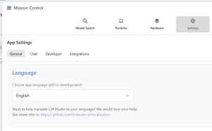 ウィンドウ右下の設定ボタン (Ctrl + ,) から[Mission Control]を開き、[Settings]タブの[General]の[Language]から表示言語を変更できます。