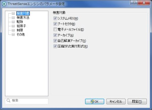 除外されたファイル拡張子 | 指定の拡張子のファイルを、検査から除外する | ThreatSenseで対象外となる |