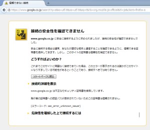 Firefoxがこの影響を受けた場合には、「安全な接続ができませんでした」「example.com への接続中にエラーが発生しました。 Peer’s certificate has an invalid signature. エラーコード: SEC_ERROR_BAD_SIGNATURE」のエラーページが表示されます。その他の解決策 - 安全な接続ができませんでした | Firefox ヘルプ