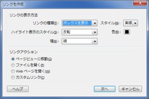 スクロールバーを操作するなどして設定するページを表示させてたら、[リンクを設定]をクリックします。最後に手のひらツールなどにツールを変更すると、リンクの作成は終了します。その状態でリンクにマウスポインタを合わせるとその形状が変化し、クリックするだけで設定したページへ移動できます。