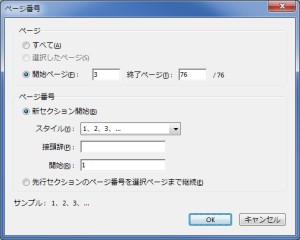 スタイルで[i、ii、iii]や[a、b、c]を設定した場合には、ページ指定ダイアログでもその通りに入力する必要があります。またスタイルで「なし」を選択すると、ページ番号を削除できます。