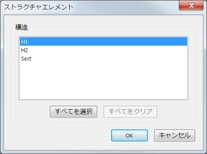 表示された構造エレメントからしおりの対象とする要素を選択し、[OK]をクリックします。そうすると[名称未設定]というしおりに入れ子にされる形式で、構造情報からしおりが作成されます。