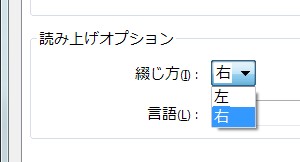 既定では左綴じになっているため、縦組みの文書では左右が逆に表示されてしまいます。よってそのような場合には、これを右綴じに変更します。