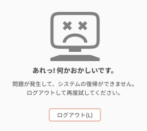 Oh no! Something has gone wrong. A problem has occurred and the system can't recover. Please log out and try again. |