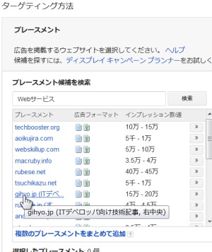 AdWordsの手動プレースメントでの表示